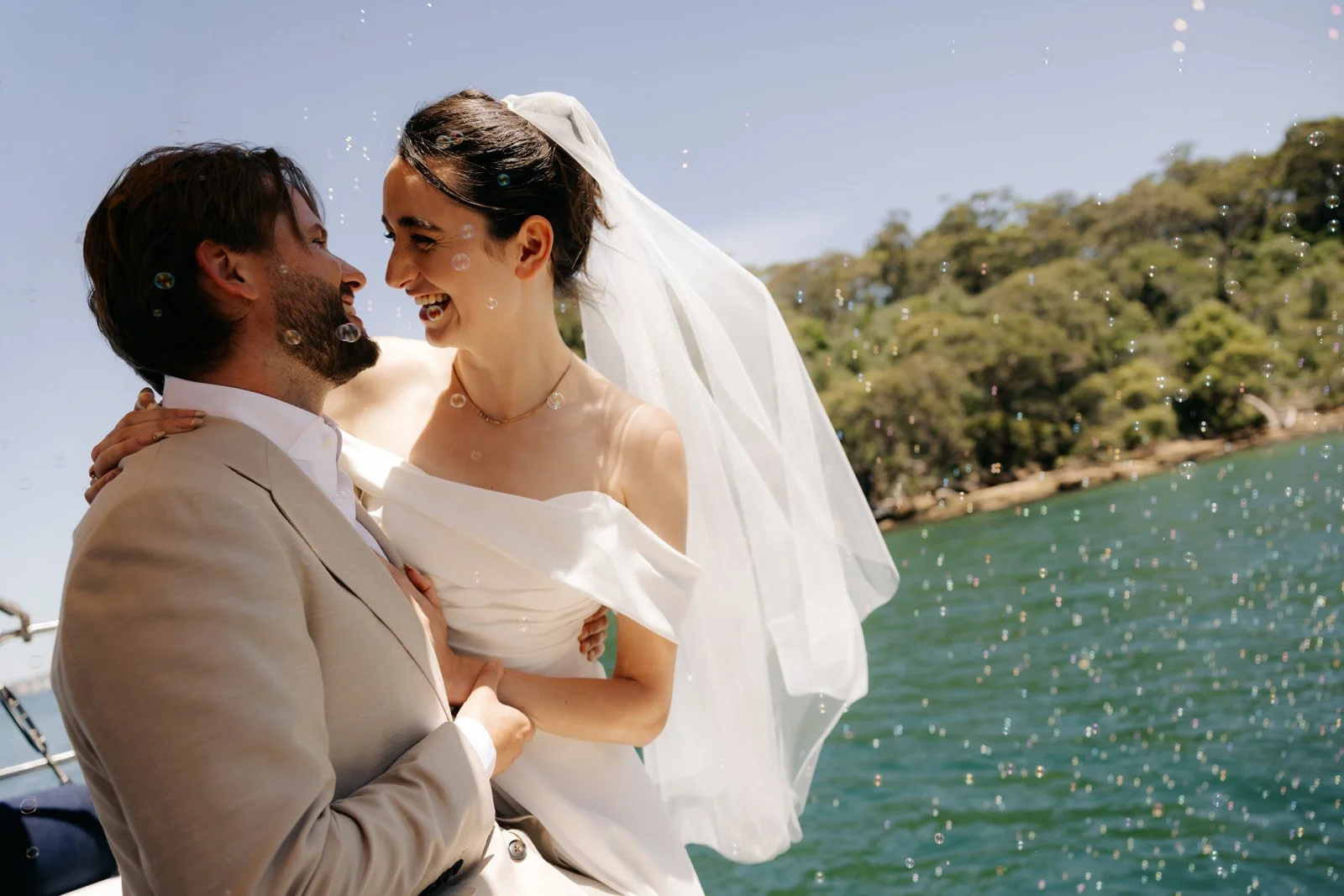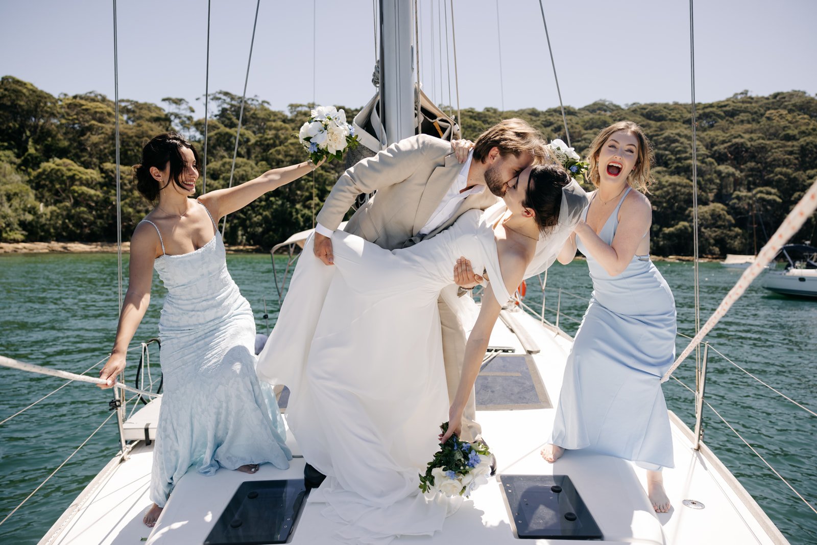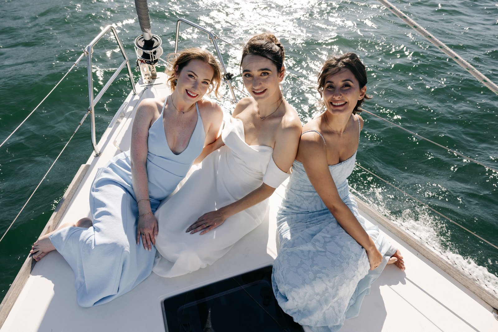 Drinks & photos on boat while sailing to destination for ceremony