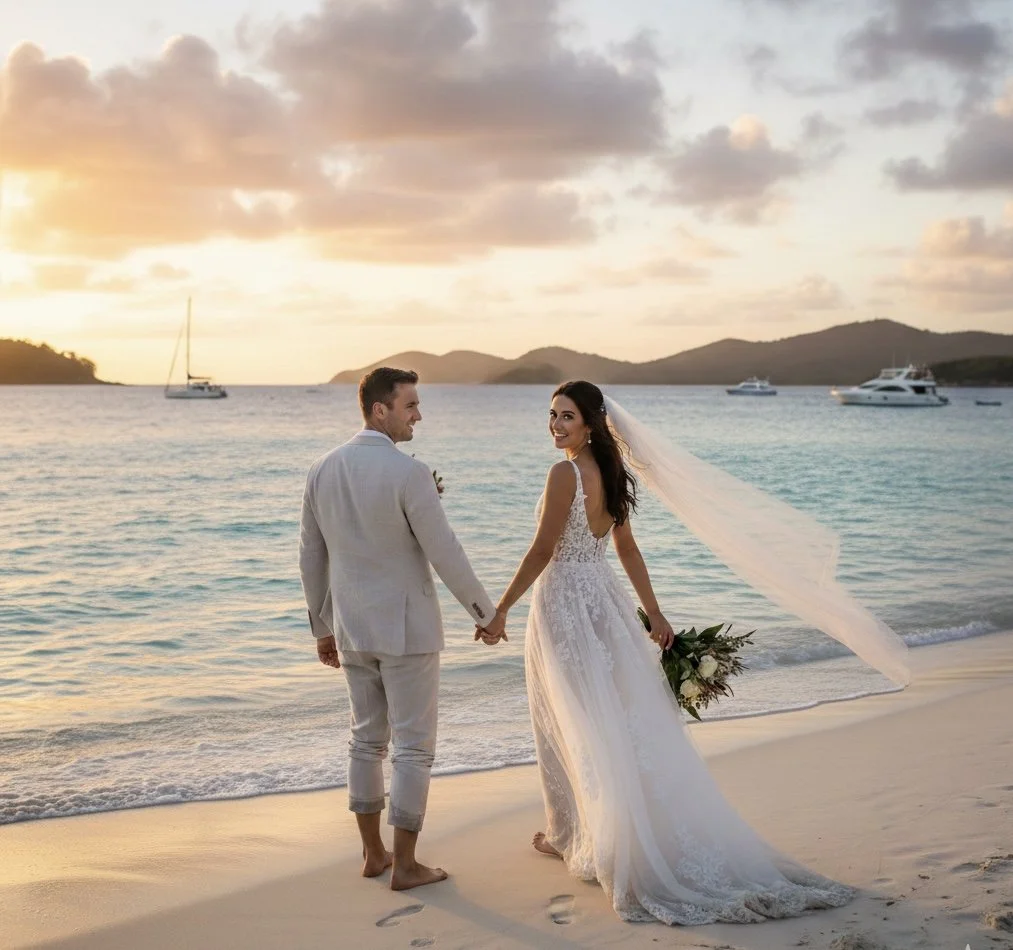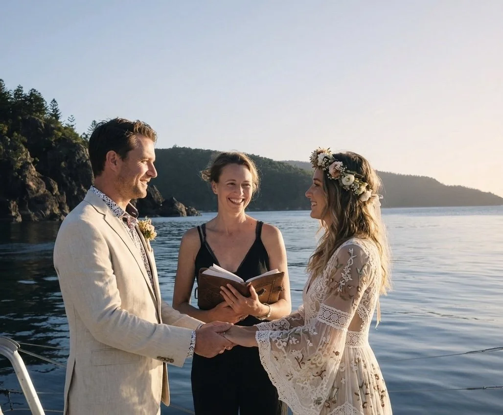 The wedding ceremony can be held on the pristine white sand of a deserted island beach, or on the front of the yacht - surrounded by crystal clear, blue water.