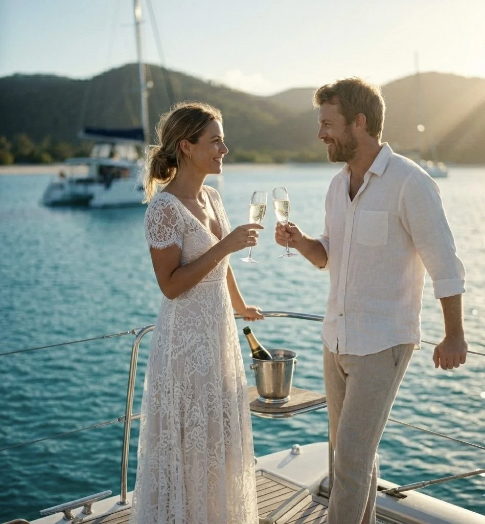 The marrying couple & guests will be sailed around the breathtaking Whitsunday Islands, for 5 nights, on a private sailing boat.